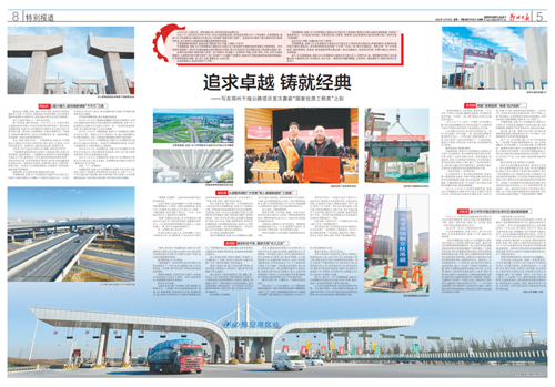 當日上午,從在北京召開的“2022—2023年度國家優(yōu)質(zhì)工程獎總結表彰大會”上傳來喜訊,京港澳高速、省道102與四港聯(lián)動大道組合式互通立交工程榮獲“國家優(yōu)質(zhì)工程獎”。這是鄭州市國省干線公路項目首次獲得該獎項,標志著我市公路建設高質(zhì)量發(fā)展取得新的突破。