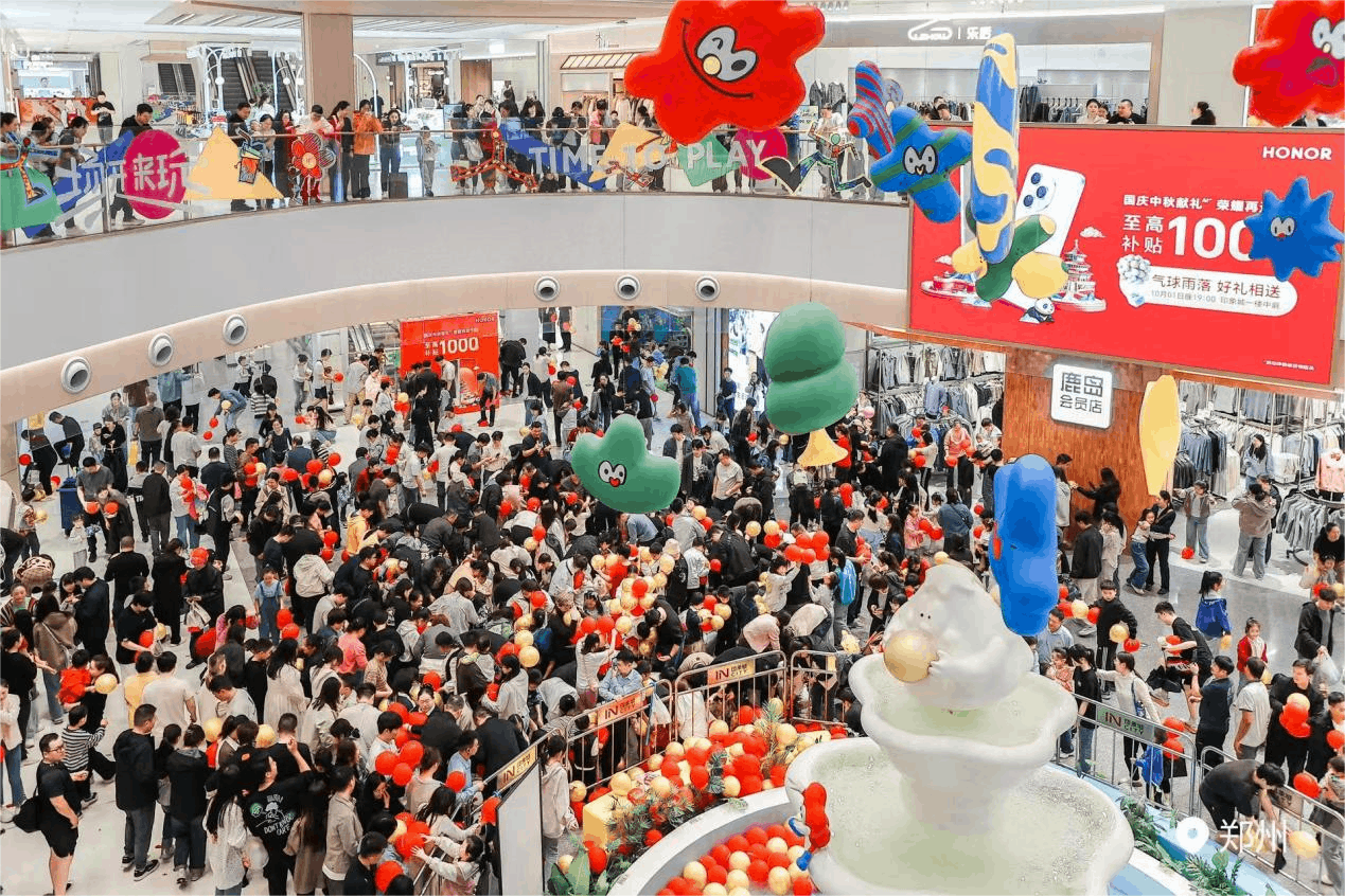 鄭州嵩南印象城推出《長(zhǎng)長(zhǎng)來(lái)相聚》及國(guó)慶消費(fèi)券派發(fā)等系列活動(dòng),以“嫦娥巡游”“海底撈月鵝”等趣味互動(dòng)活動(dòng),為周邊居民提供家門(mén)口的假日休閑選擇,廣受周邊消費(fèi)者喜愛(ài)。同時(shí),嵩南印象城通過(guò)“項(xiàng)目搭臺(tái)品牌唱戲”,聯(lián)動(dòng)場(chǎng)內(nèi)品牌舉辦國(guó)慶中秋獻(xiàn)禮氣球雨、月餅DIY等多場(chǎng)活動(dòng),拉近鄰里關(guān)系的同時(shí)激活商業(yè)活力。國(guó)慶中秋期間共計(jì)接待客流35萬(wàn)人次,銷售業(yè)績(jī)1200萬(wàn)元。