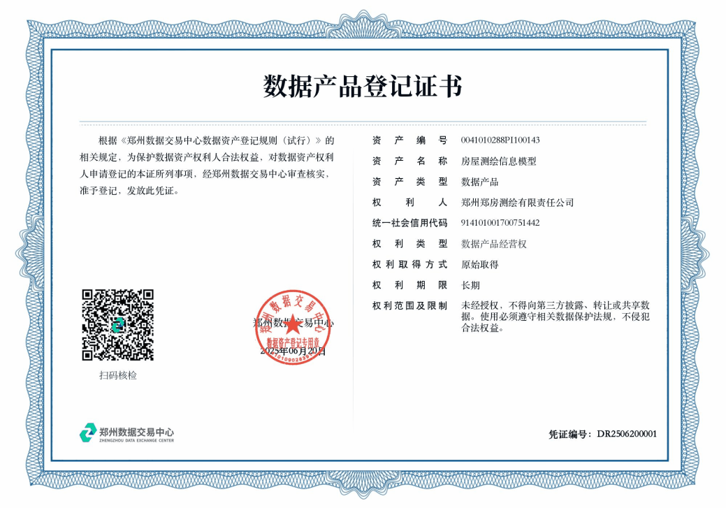 鄭州鄭房測繪有限責任公司獲評“高新技術企業(yè)”,榮獲“河南省地理信息企業(yè)20強”稱號,取得《數(shù)據(jù)產品登記證書》,為城市更新與管理提供專業(yè)數(shù)據(jù)服務。極地冰雪探測關鍵技術及應用和房地一體化測繪系統(tǒng)平臺關鍵技術與應用研究分別獲得河南省測繪科學技術獎特等獎和二等獎。2025年,申報的三個測繪項目,分別榮獲“2025年度優(yōu)秀測繪工程獎”金獎、銀獎與銅獎。
