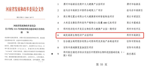 4月2日,河南省發(fā)展改革委發(fā)布通知,經(jīng)省政府同意,2026年河南省重點(diǎn)建設(shè)項(xiàng)目名單正式公布。名單明確,今年全省重點(diǎn)項(xiàng)目共1418個(gè),總投資約3.2萬億元,力爭(zhēng)年度完成投資1萬億元以上。其中,城發(fā)·高新生物經(jīng)濟(jì)產(chǎn)業(yè)園成功入選,這是該項(xiàng)目繼2025年首次躋身省級(jí)重點(diǎn)建設(shè)項(xiàng)目行列后,再次被列入該序列,彰顯其在全省生物經(jīng)濟(jì)發(fā)展布局中的重要地位。